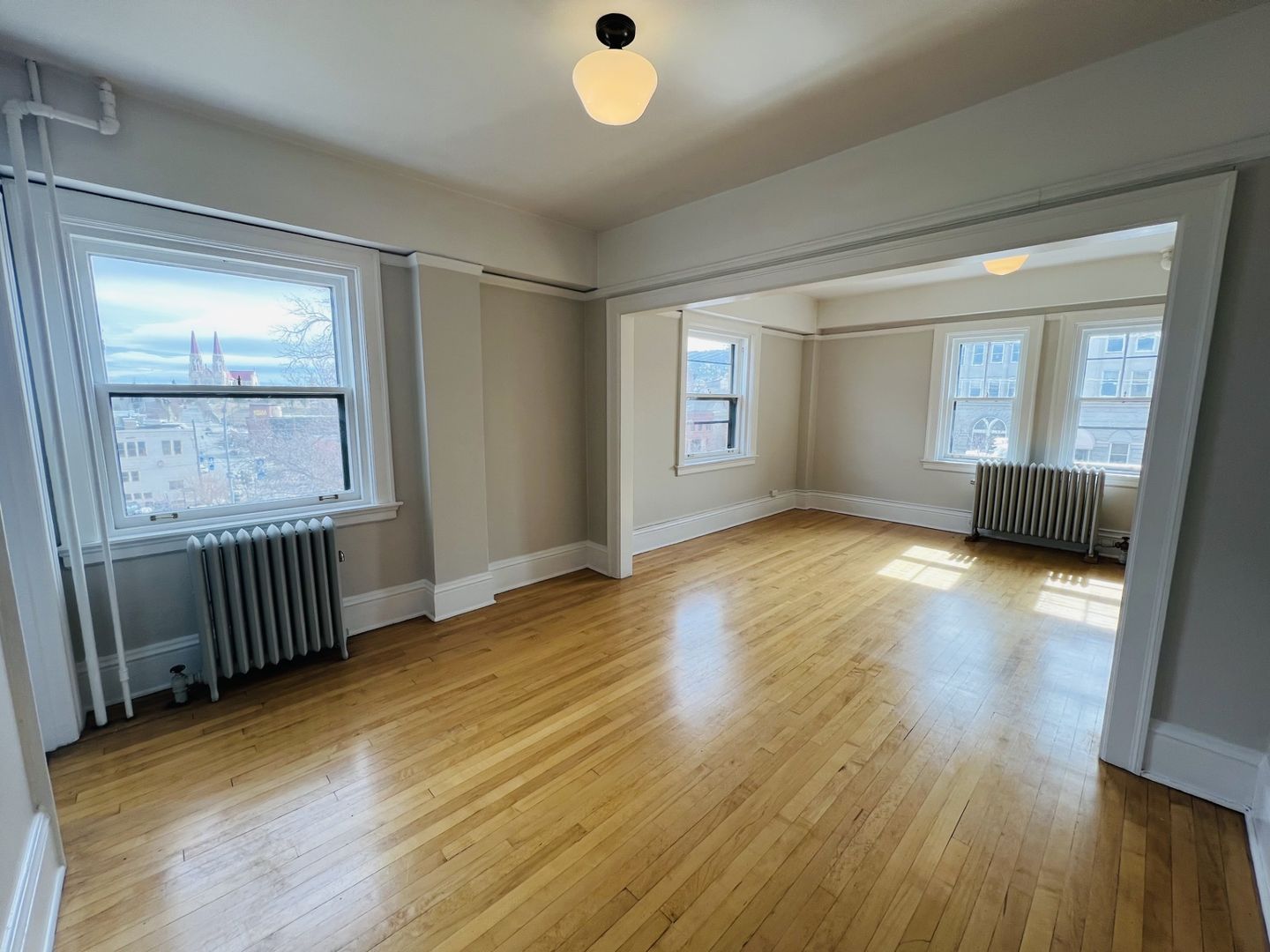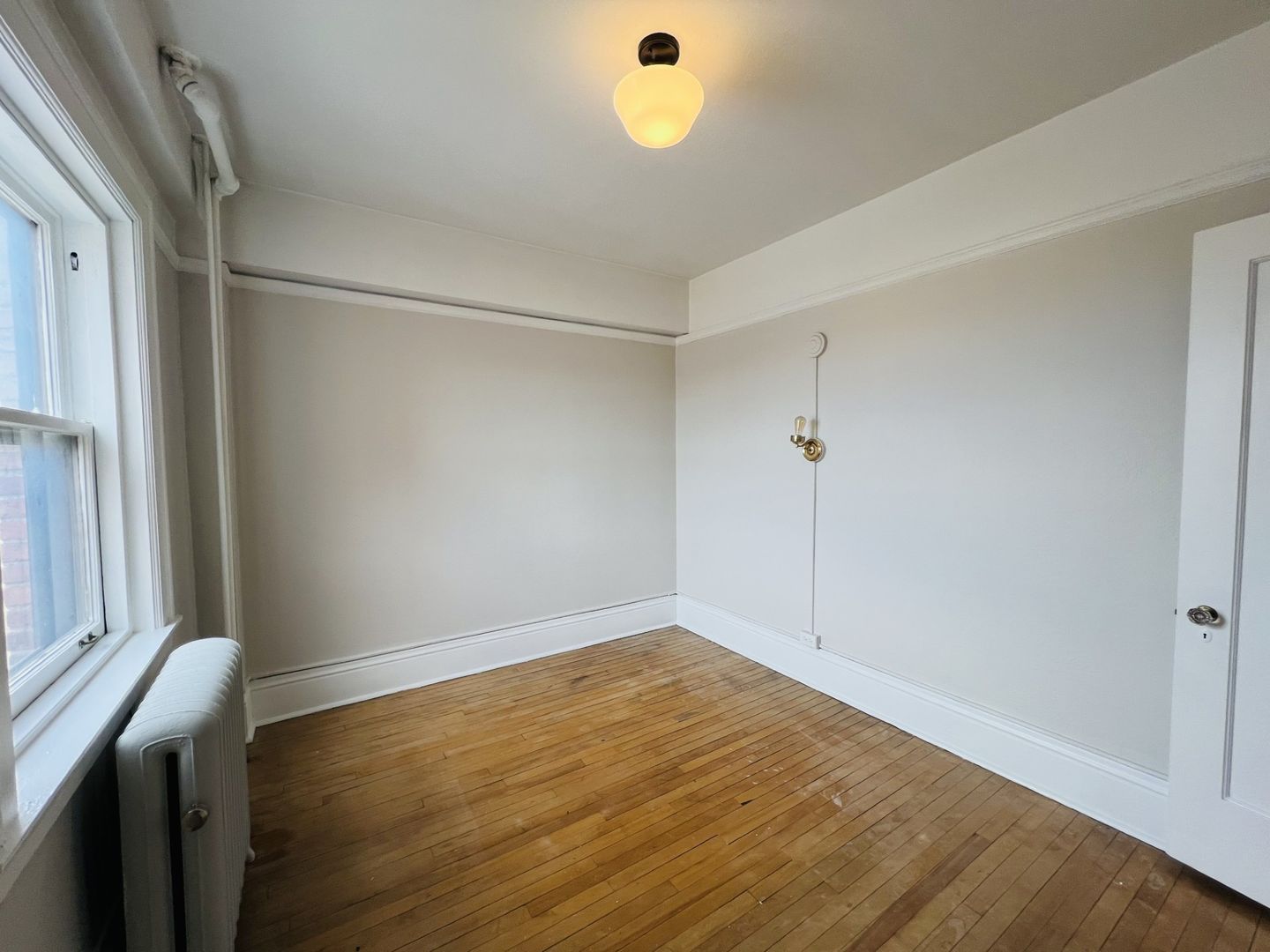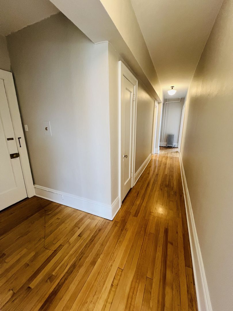 -Renovated March 2026 (refinished floors, new paint, new light fixtures). -Secure entry with video surveillance. -Hardwood floors. -Full kitchen with refrigerator and oven / range. -Steam heat system for low utility bills. -Smoke-free environment. -Shared laundry facilities on-site.
